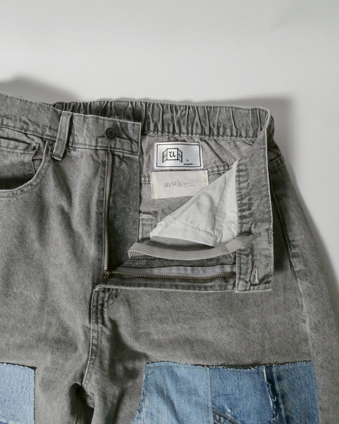 [2026new year limited]U-BY EFFECTEN(ユーバイ エフェクテン) ×muku by SAICA double knee patchwork denim pants gray L