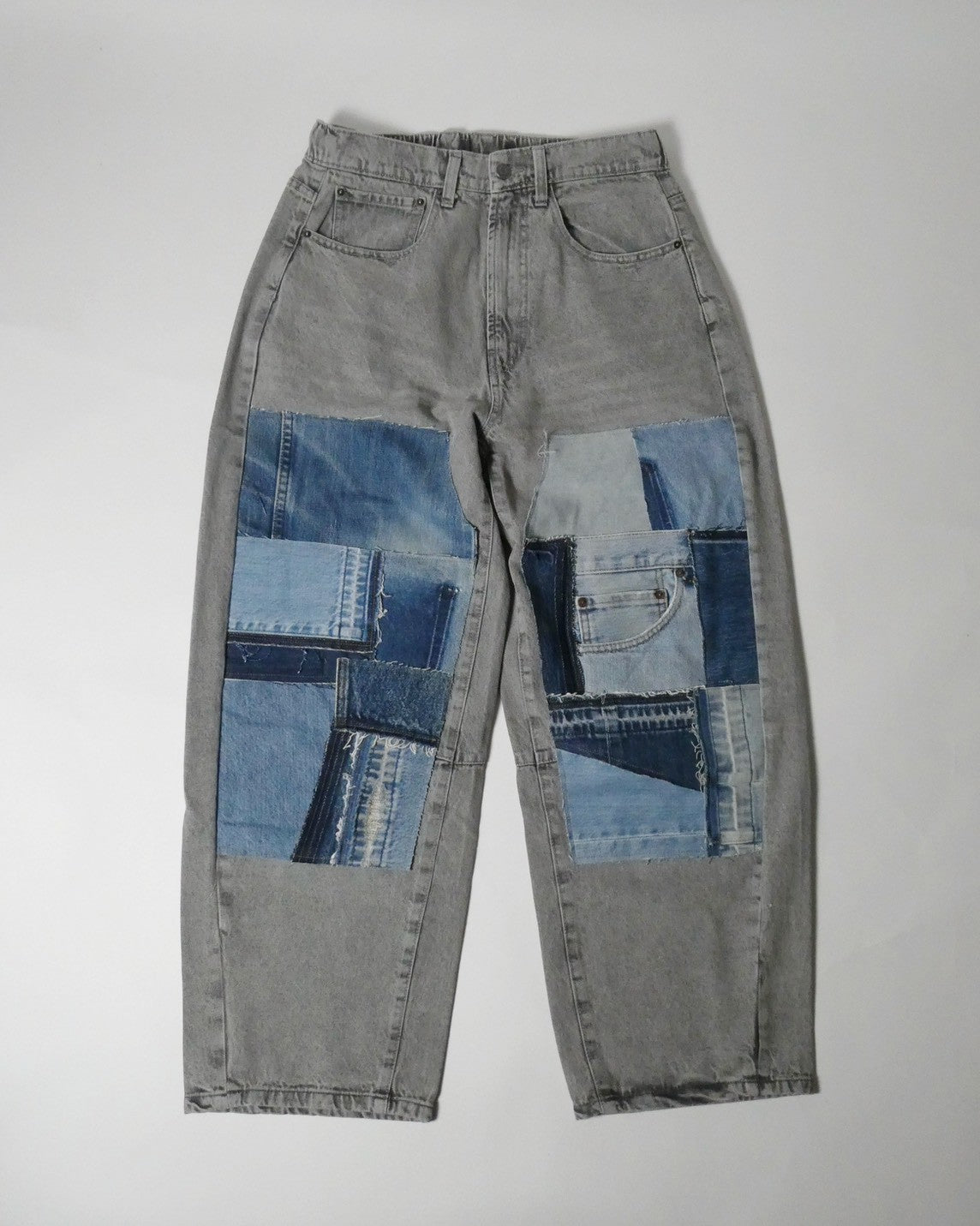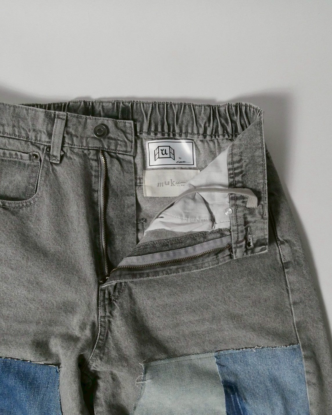 [2026new year limited]U-BY EFFECTEN(ユーバイ エフェクテン) ×muku by SAICA double knee patchwork denim pants gray M