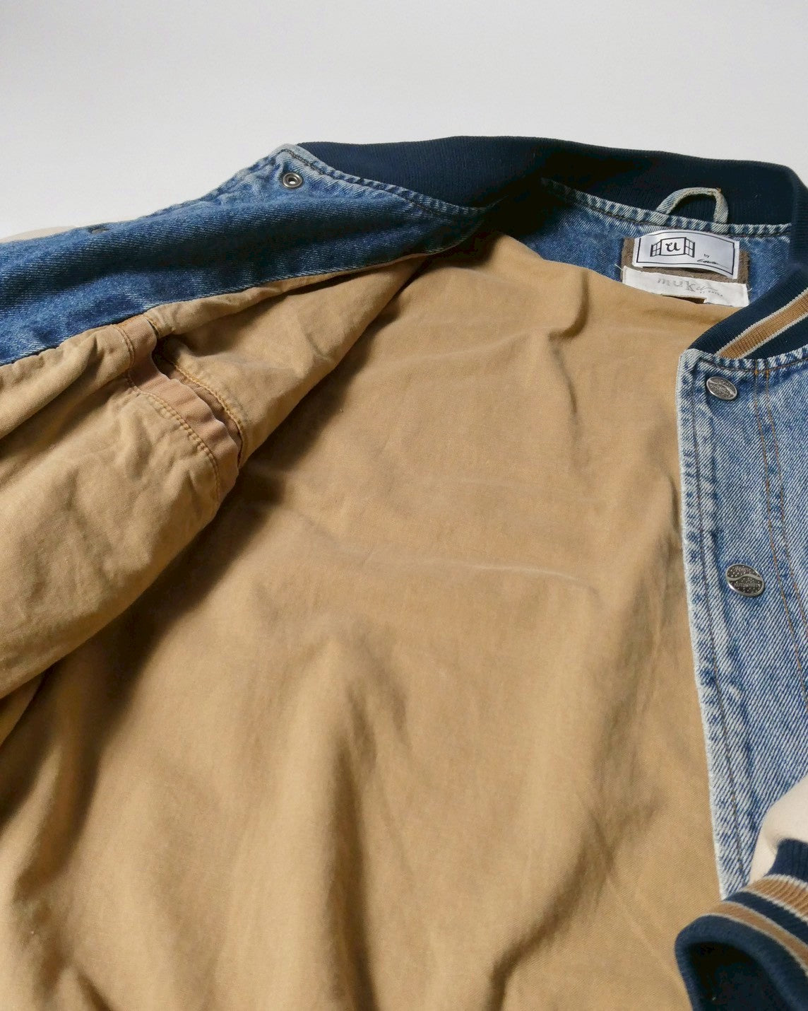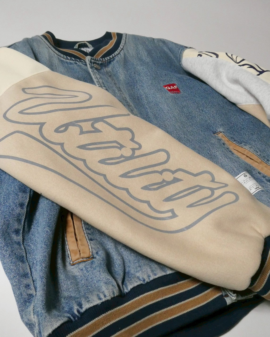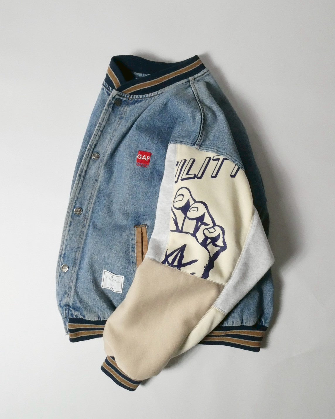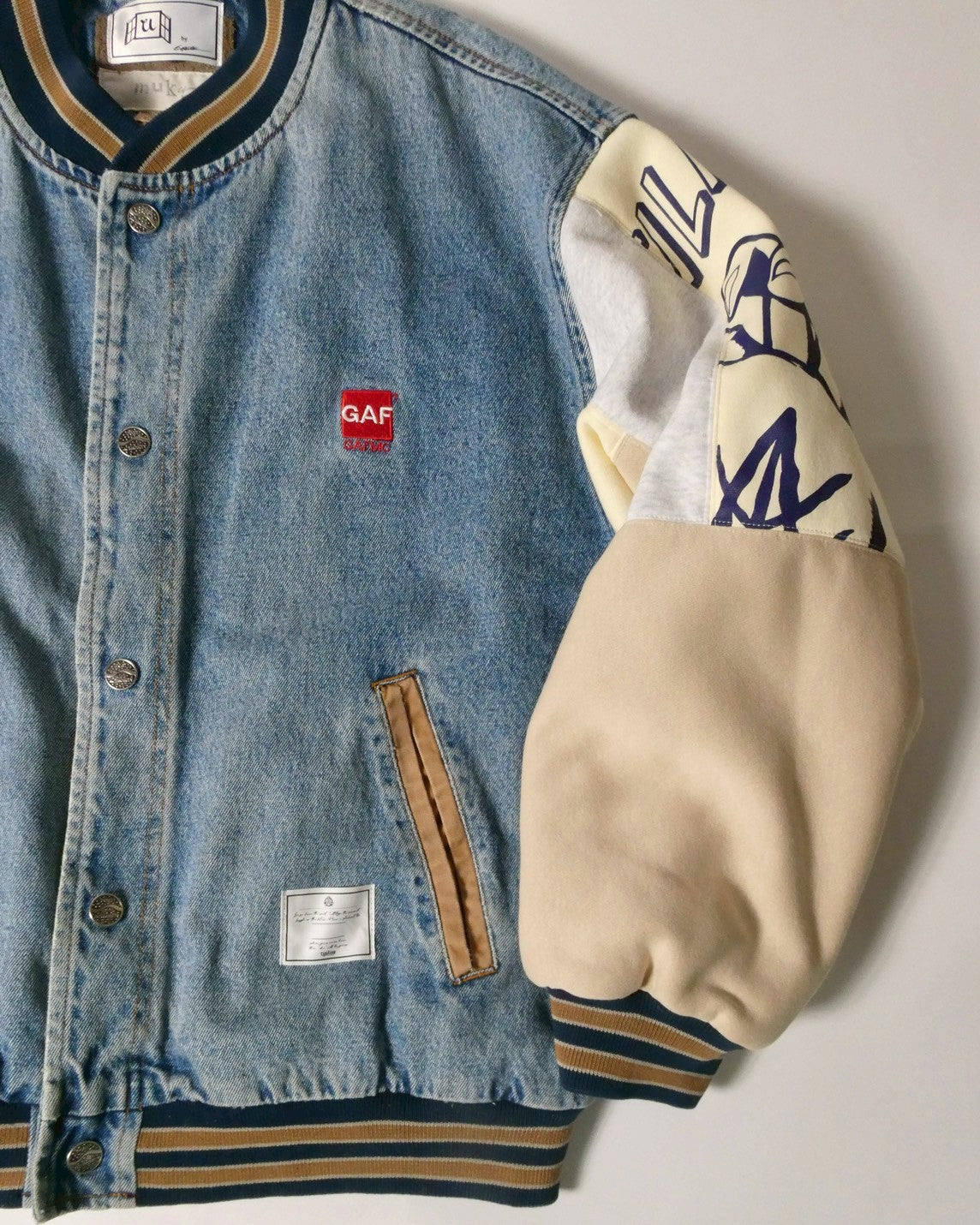 [2026new year limited]U-BY EFFECTEN(ユーバイ エフェクテン) ×muku by SAICA patch sleeve denim stadium jacket type1