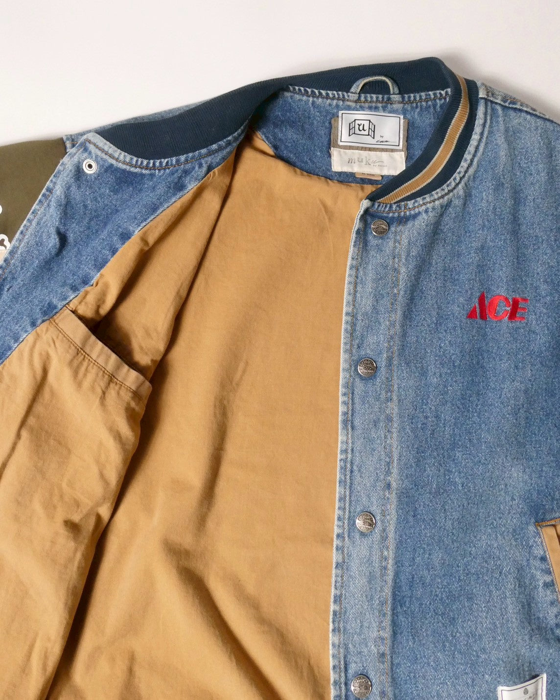 [2026new year limited]U-BY EFFECTEN(ユーバイ エフェクテン) ×muku by SAICA patch sleeve denim stadium jacket type2