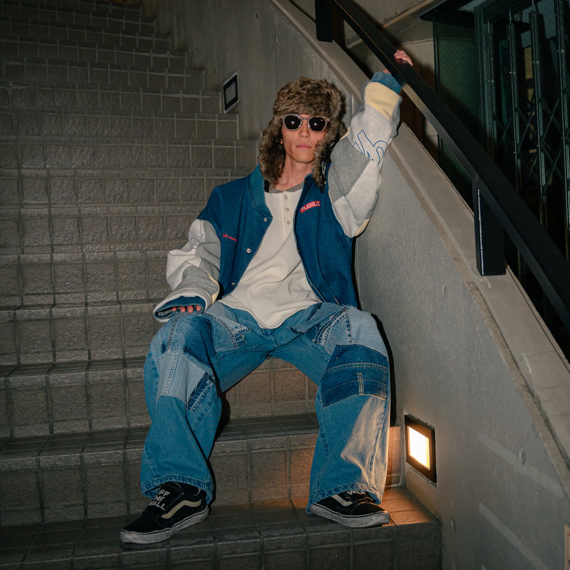 今季も初期からコラボアイコンの1つであるデニムとパッチワークを兼ね合わせた、古着と新品の垣根を越え高め合う、全て一点物のラインナップとなっています。