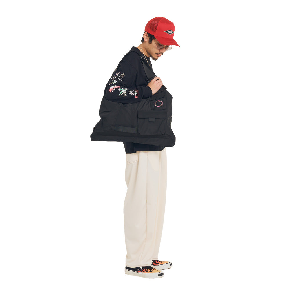 さらにベストの裾をZIPで閉じると変形してトートバッグにもなる2wayアイテムです。