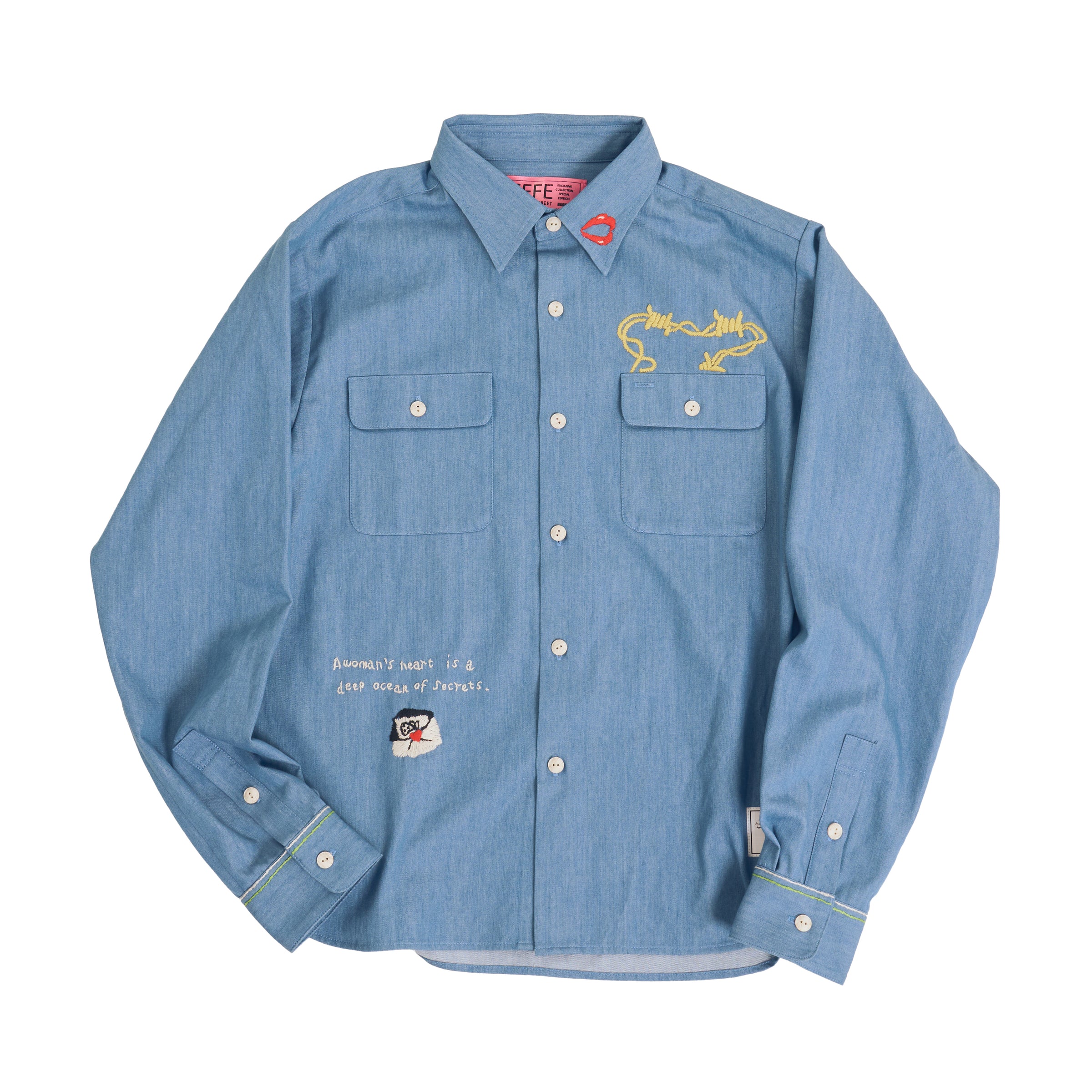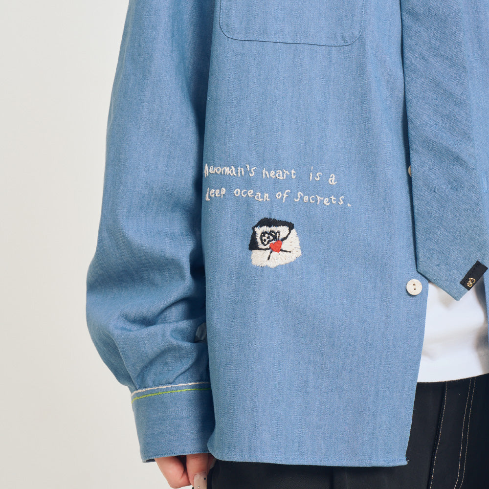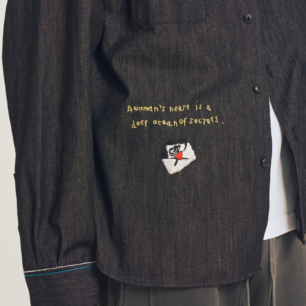 フロントや片襟、袖に一針一針職人による手刺繍が入ったオリジナリティが詰まった手間暇かけた渾身の1枚。