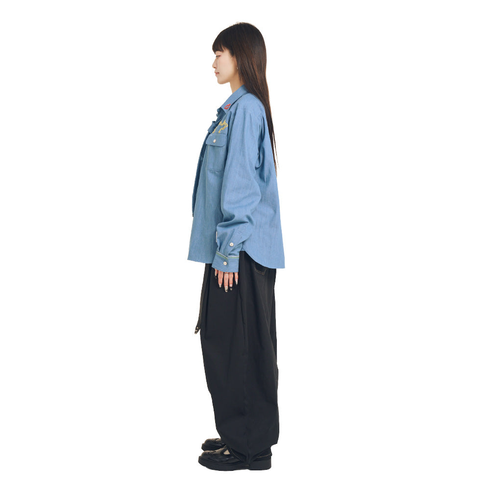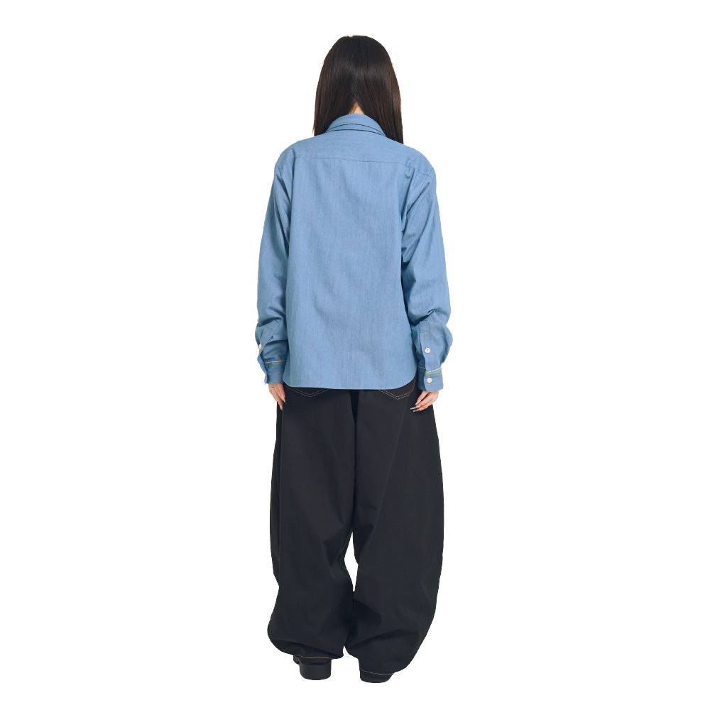 薄手でですがコシのある柔らかい生地のデニムシャツ。