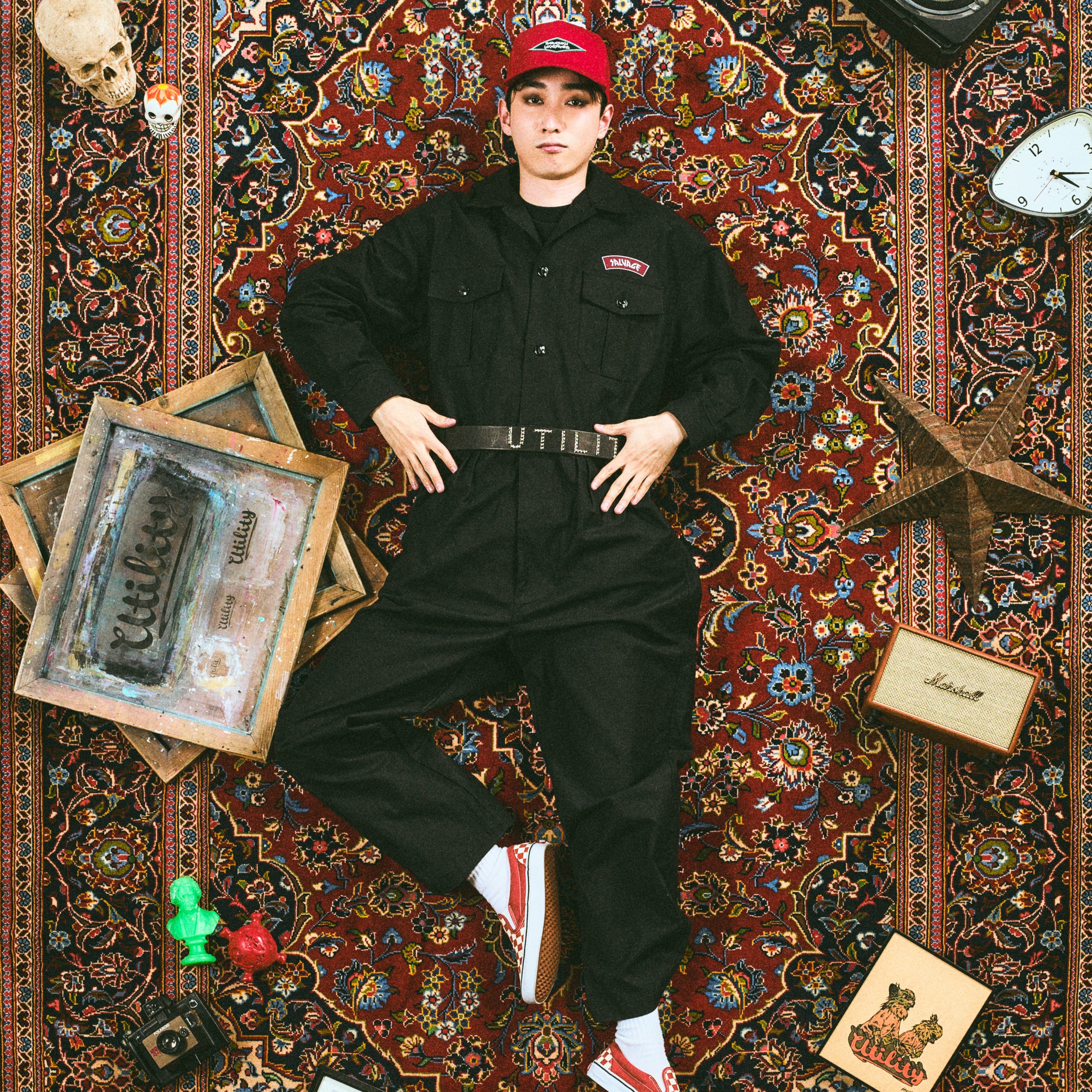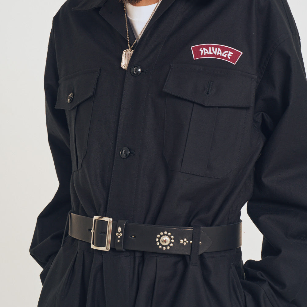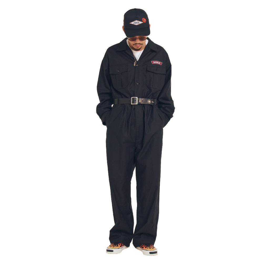 ストレッチが効いたワーク感溢れるコットンベースの生地を使用したツナギ。