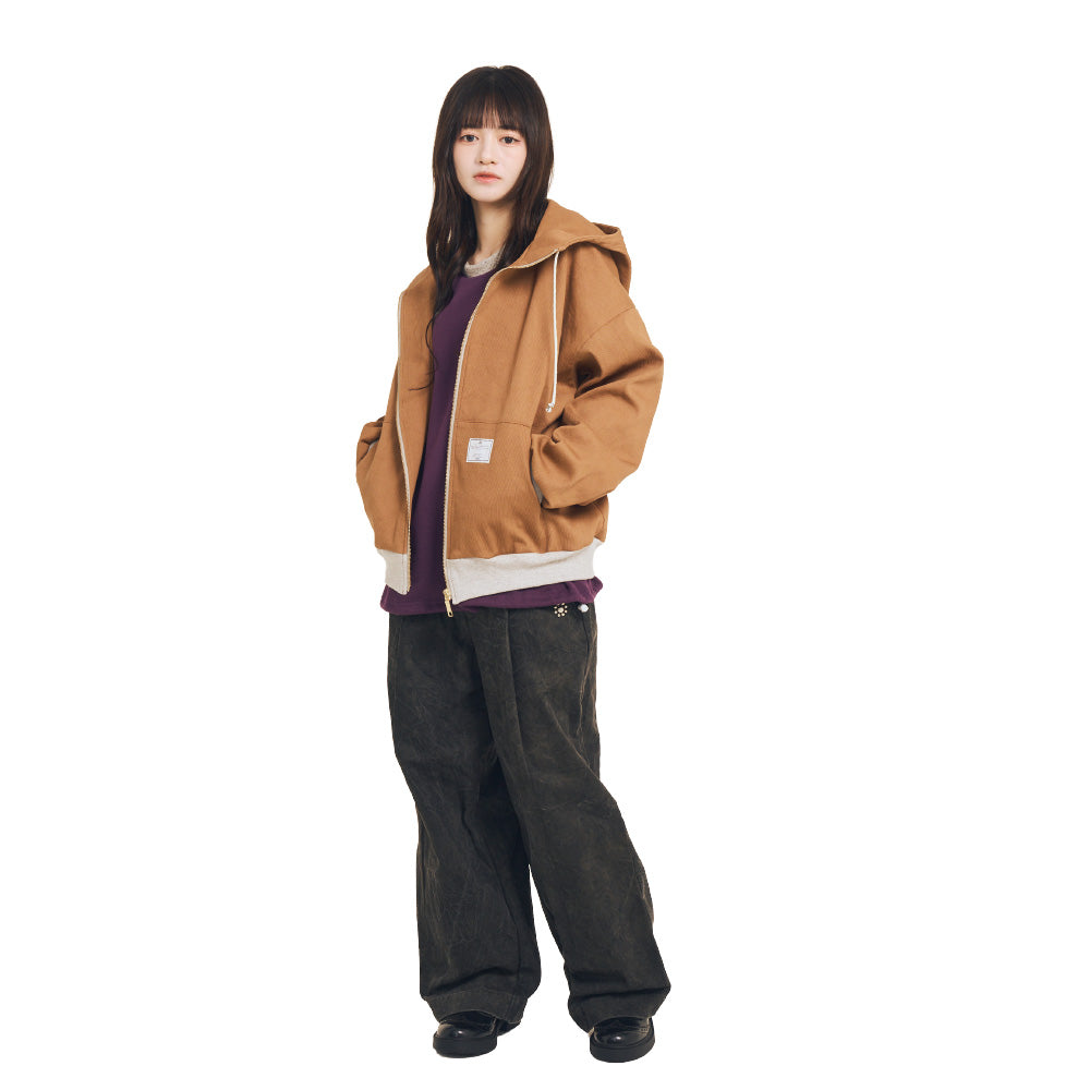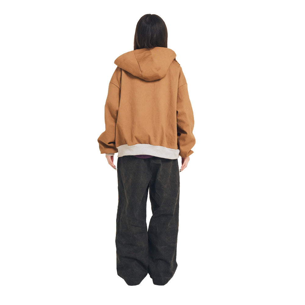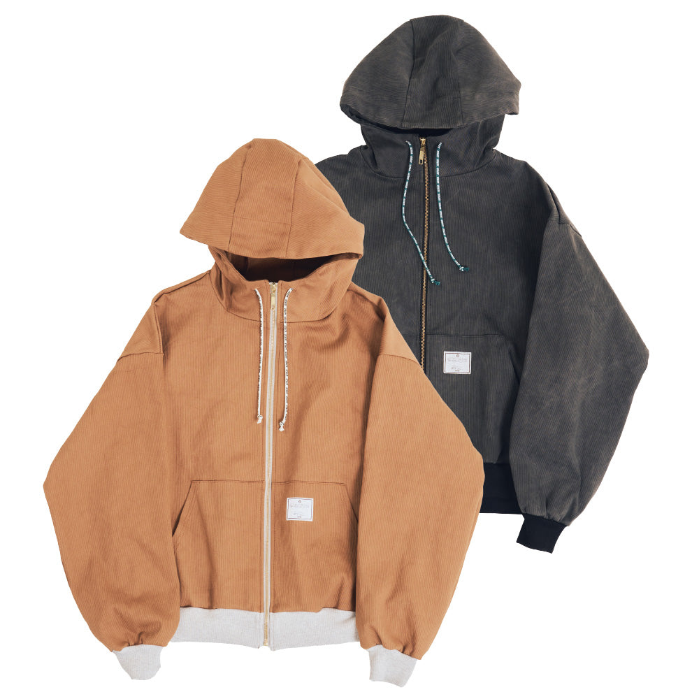ワーク調のダックパーカーをイメージしたジップアップフーディー。