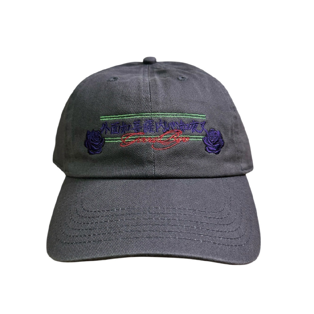 TENDER PERSON 25AW新作 / KANJI SOUVENIR CAP "YASHA" フロントに「外面如菩薩内心如夜叉」とバラの刺繍。アジャスタブル仕様でサイズ調整可能。(入荷中)